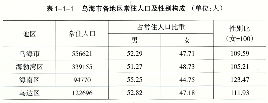 关键词:乌海市,常住人口,性别